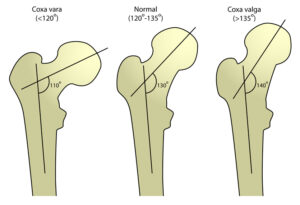 The hip and pelvis are complex bony structures and there is so much variability between individuals. There is even research showing that individuals can have different hip morphology from left to right. We won’t get into all the details of how specific hip angles influences certain movements, but please be aware that your anatomy will dictate how you move. The illustrations below show how the angle of the femoral head can vary amongst individuals. For more information on this topic, check out this article.